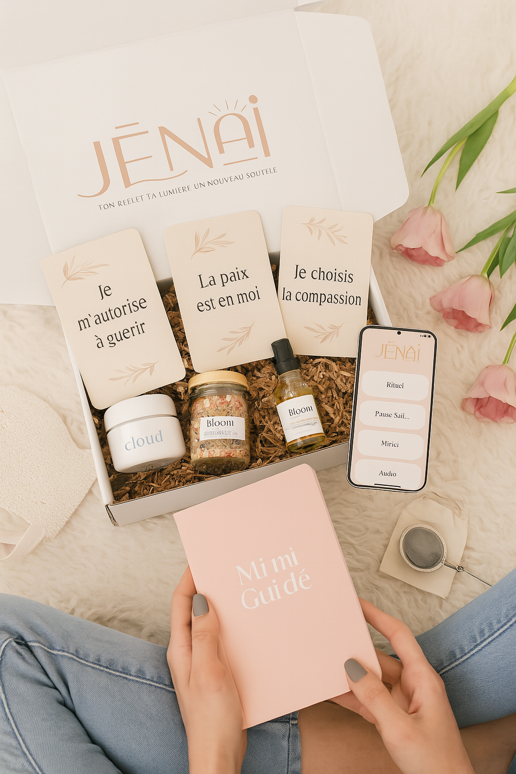 Chaque coffret JĒNAI est un sanctuaire soigneusement organisé de transformation sensorielle et intérieure.