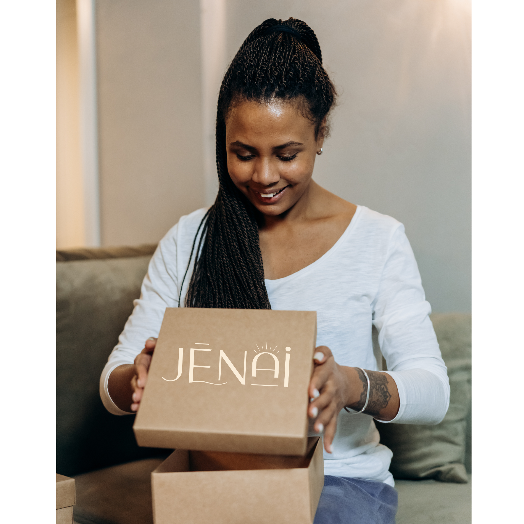 Votre coffret JĒNAI arrive chez vous au début de chaque mois. Simple, régulier et toujours sans stress.